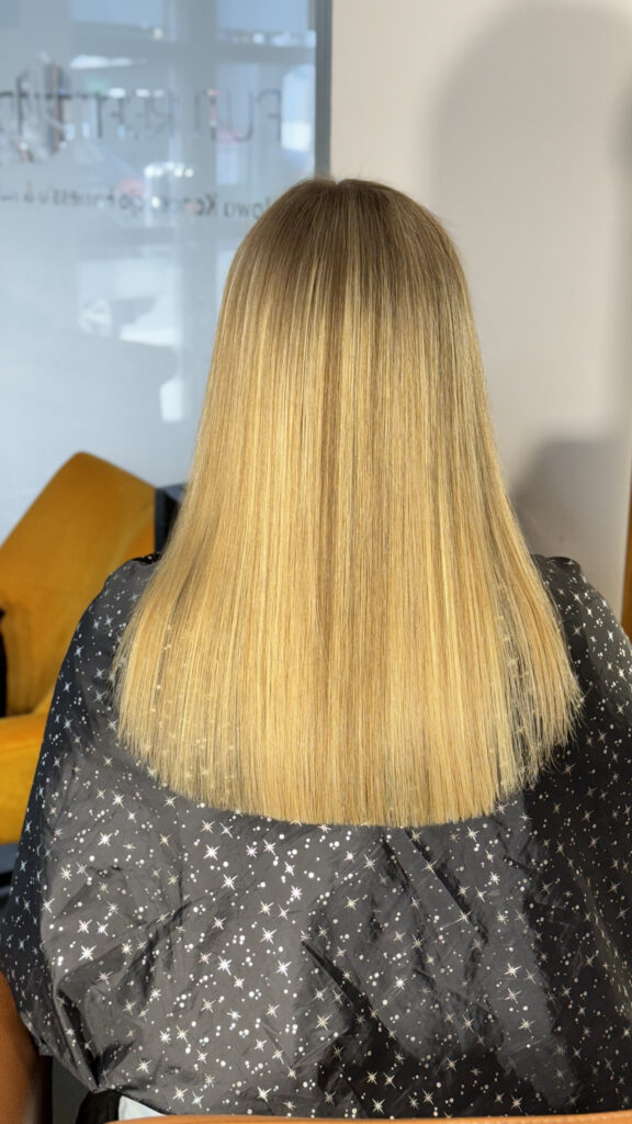 Nie można też pomijać zabiegów salonowych. Mechaniczne uszkodzenia to główny powód, dla którego wiele osób uważa, że „czy zniszczone włosy rosną” wolniej – w rzeczywistości one po prostu łamią się, zanim osiągną zaplanowaną długość. Zabieg taki jak nanoplastia włosów może jednocześnie wygładzić pasma i ułatwić ich zapuszczanie dzięki mniejszej łamliwości.
